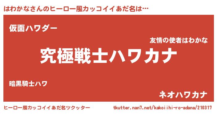 | 女子向けラノベタイトル風あだ名 | 『はわかなストレイドッグス』 |