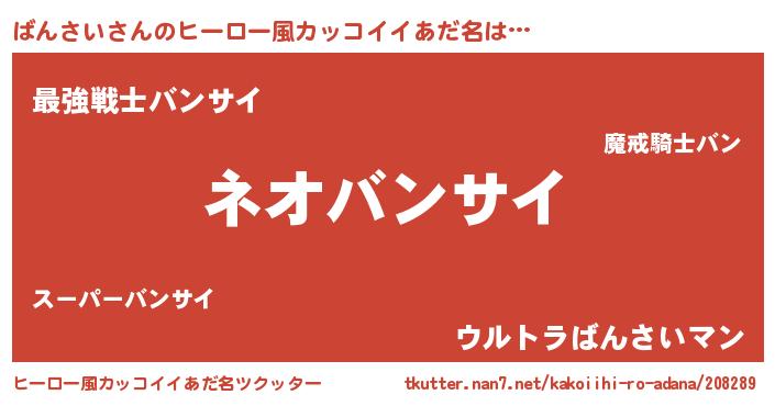 | 男性向けラノベタイトル風あだ名 | 『緋弾のバンサイ』 |