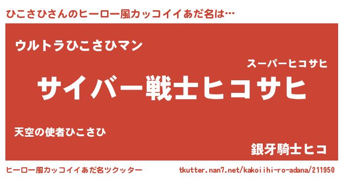 | ファンタジー風あだ名 | 『ゼヒコトゥ』『エターナルヒコサヒー』 |