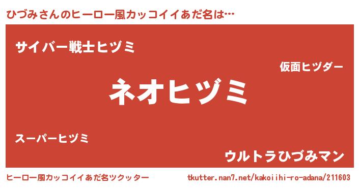 | 胡散臭い通販商品みたいなあだ名 | 『絶対に幸福をもたらす健康食品…その名も「ひづみ」』 |