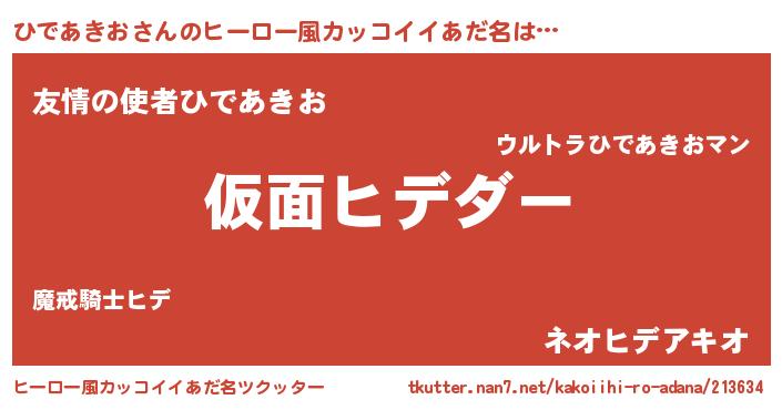 | 男性向けラノベタイトル風あだ名 | 『この素晴らしい世界にひであきおを!』 |