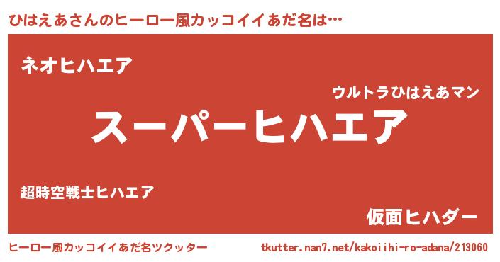 | ヘコむあだ名 | 『ひはっふぃ~』『ひはえあ(小並感)』 |