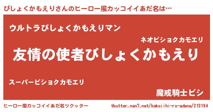 | 欧米人風あだ名 | 『ダニエルびしょくかもえり』 |