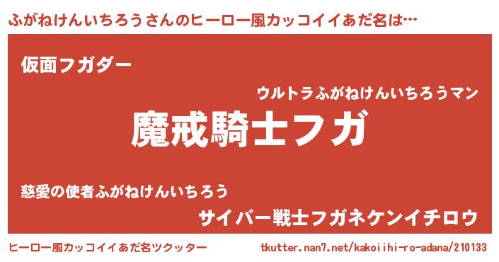 | 男性向けラノベタイトル風あだ名 | 『ダンジョンにふがねけんいちろうを求めるのは間違っているだろうか』 |