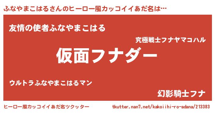 | 欧米人風あだ名 | 『アンジェラ・ふなやまこはる』 |