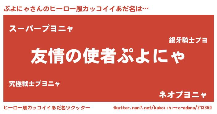 | 男性向けラノベタイトル風あだ名 | 『転生したらぷよにゃだった件』 |
