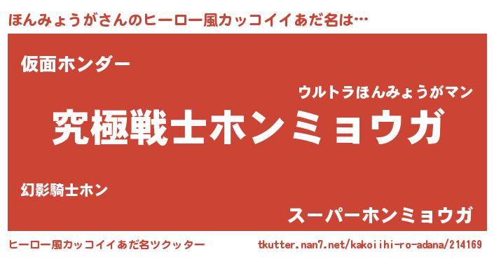| 男性向けラノベタイトル風あだ名 | 『Re:ほんみょうがから始める異世界生活』 |