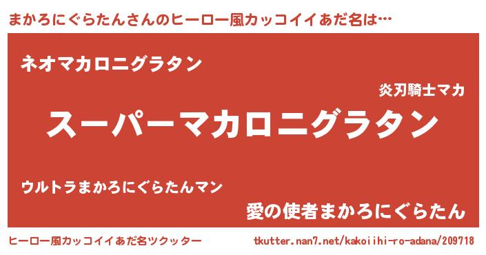 まかろにぐらたんさんのヒーロー風カッコイイあだ名をツクッター!
