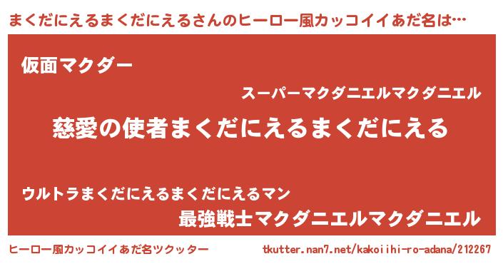 | 料理風あだ名 | 『まくだにえるまくだにえるとほうれんそうの和風グラタン』 |