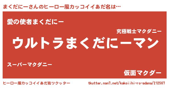 | 意味不明あだ名 | 『まくだにーフォーエバー』 |