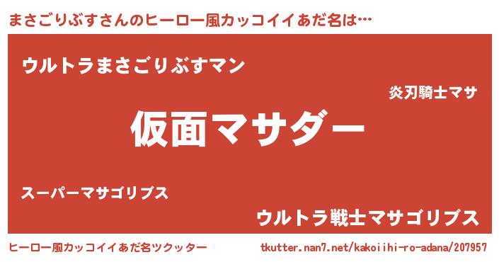 | 男性向けラノベタイトル風あだ名 | 『マサゴリブススレイヤー』 |