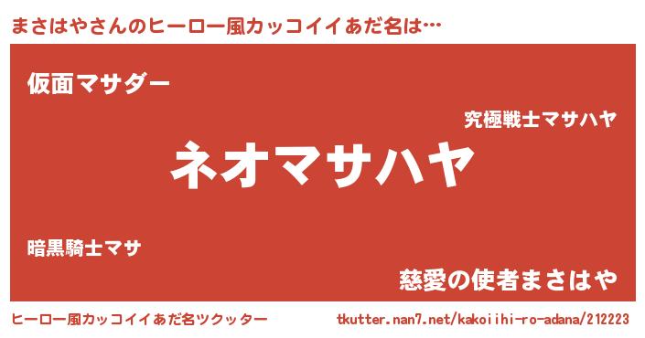| ヘコむあだ名 | 『まさはや(笑)』『まさっちょ』 |