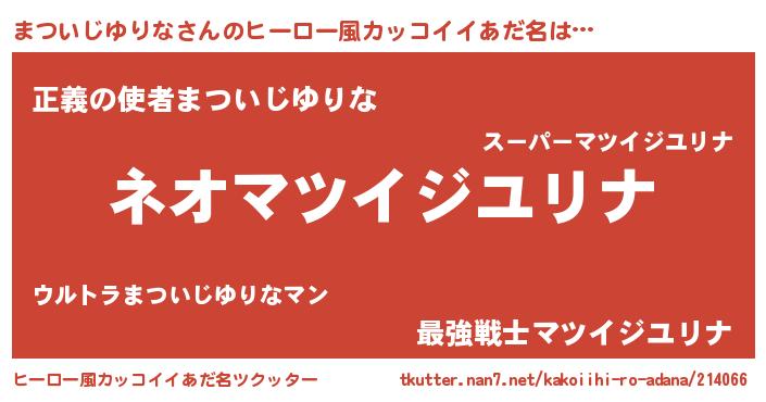 | ヘコむあだ名 | 『まついじゆりな(遠い目)』『まつっふぃ~』 |