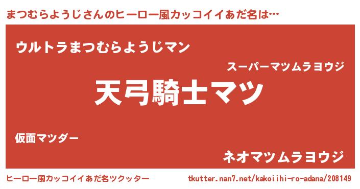 | 胡散臭い通販商品みたいなあだ名 | 『全米が絶賛したサプリメント…その名も「まつむらようじ」』 |