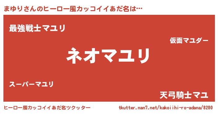 | ヘコむあだ名 | 『まゆり(苦笑)』『まゆっ子』『豆乳』 |