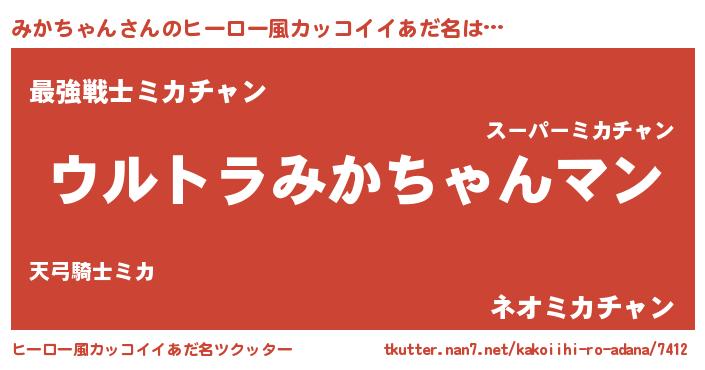 | 男性向けラノベタイトル風あだ名 | 『うちのみかちゃんが世界を掌握している!』 |