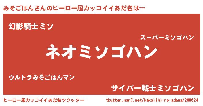 みそごはんさんのヒーロー風カッコイイあだ名をツクッター!