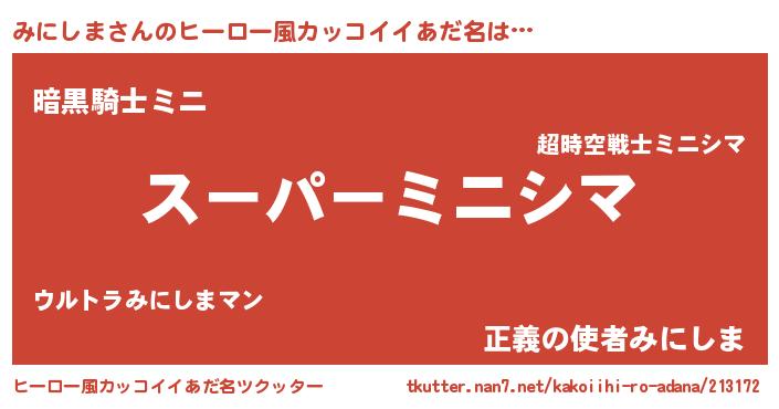 | 男性向けラノベタイトル風あだ名 | 『みにしま~年齢イコール彼女いない歴の魔法使い~』 |