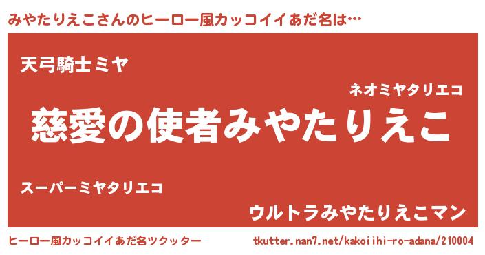 | 欧米人風あだ名 | 『みやたりえこ・ステッグマイヤー』 |