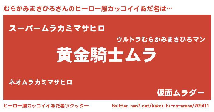 | 男性向けラノベタイトル風あだ名 | 『ダンジョンにむらかみまさひろを求めるのは間違っているだろうか』 |