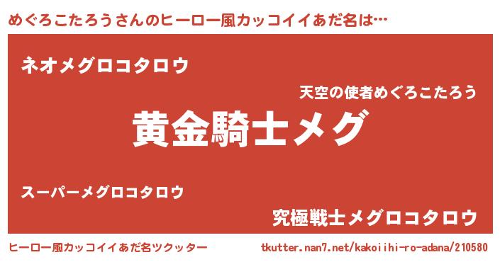 | 男性向けラノベタイトル風あだ名 | 『ダンジョンにめぐろこたろうを求めるのは間違っているだろうか』 |