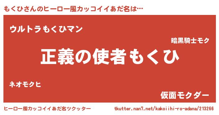 | 男性向けラノベタイトル風あだ名 | 『モクヒスレイヤー』『緋弾のモクヒ』 |