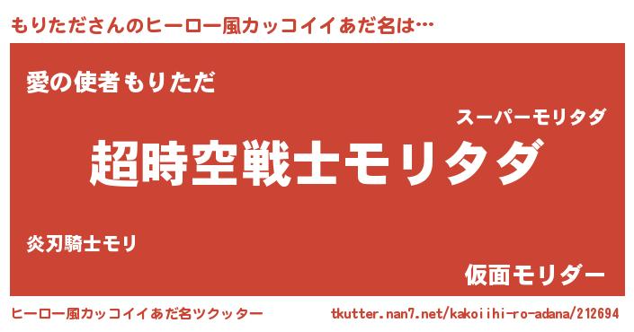 | 女子向けラノベタイトル風あだ名 | 『もりただなんてお断りですっ。』 |