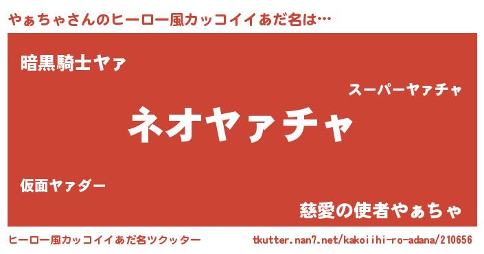 | 男性向けラノベタイトル風あだ名 | 『やぁちゃに滅ぼされるだけの簡単なお仕事です』 |