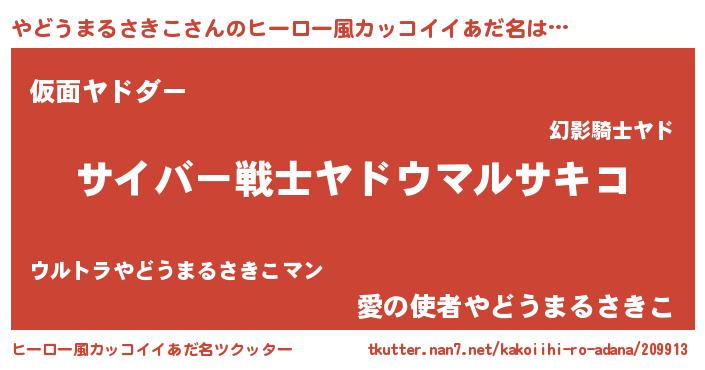| 女子向けラノベタイトル風あだ名 | 『闇のやどうまるさきこ』 |