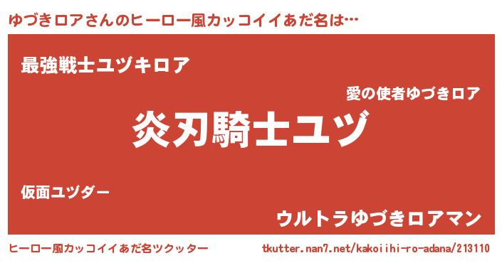 | ポケモン風あだ名 | 『ユヅゴンZ』『ヒユヅキロア』 |