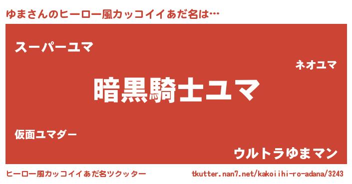 | 男性向けラノベタイトル風あだ名 | 『ダンジョンにゆまを求めるのは間違っているだろうか』 |
