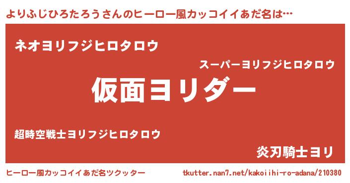 | ヘコむあだ名 | 『よりふじひろたろう(笑)』『よりを』 |