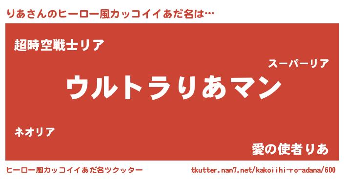 | 意味不明あだ名 | 『りあフォーエバー』『自称りあ』 |