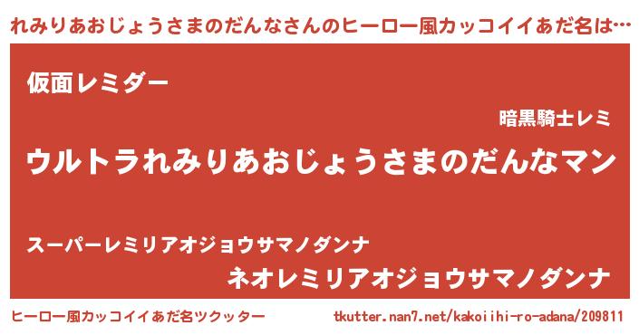 | ファンタジー風あだ名 | 『エターナルレミリアオジョウサマノダンナー』 |