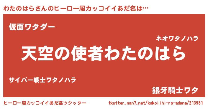 | 男性向けラノベタイトル風あだ名 | 『ノーゲーム・ノーワタノハラ』 |