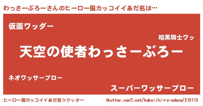 | 男性向けラノベタイトル風あだ名 | 『わっさーぶろー~年齢イコール彼女いない歴の魔法使い~』 |