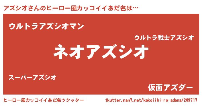 | 意味不明あだ名 | 『永久保存アズシオ』『自称アズシオ』 |