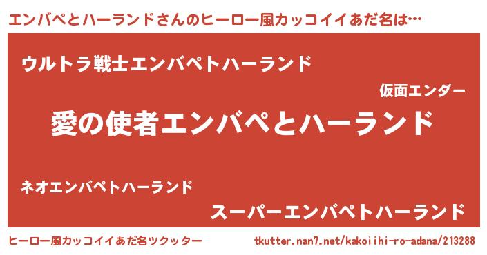 | 女子向けラノベタイトル風あだ名 | 『エンバペとハーランド恋絵巻』 |