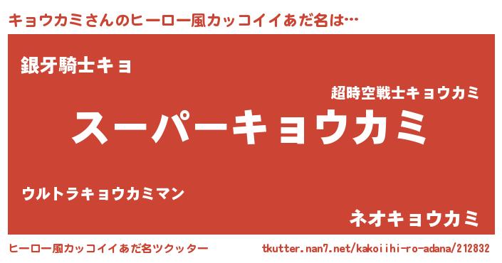 | 意味不明あだ名 | 『ペロリンキョウカミ』『自称キョウカミ』 |