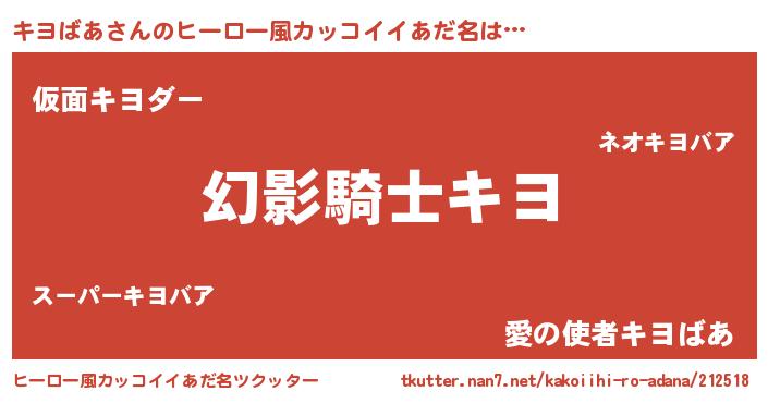 | 男性向けラノベタイトル風あだ名 | 『キヨばあの嫁は女の子じゃないと思った?』 |