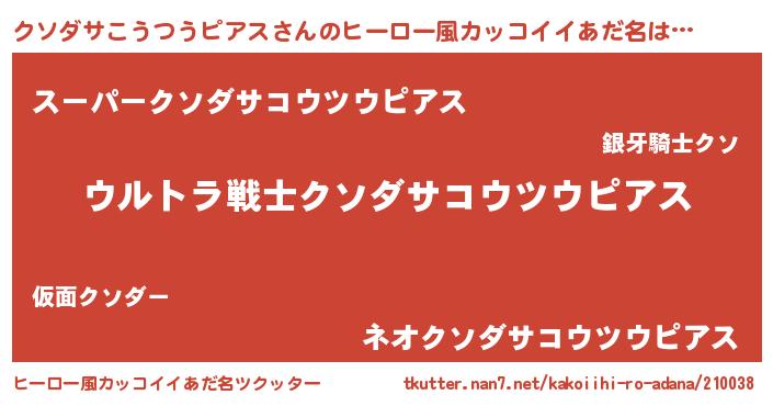 | 意味不明あだ名 | 『自称クソダサこうつうピアス』 |