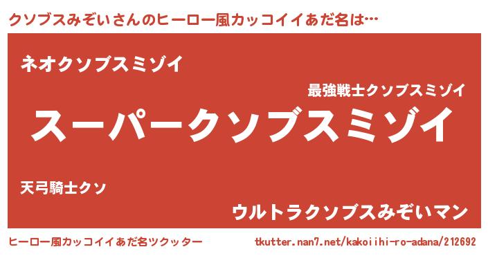 | 男性向けラノベタイトル風あだ名 | 『クソブスミゾイアートオンライン』 |