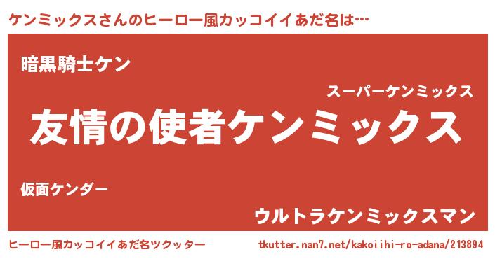 | 男性向けラノベタイトル風あだ名 | 『緋弾のケンミックス』 |