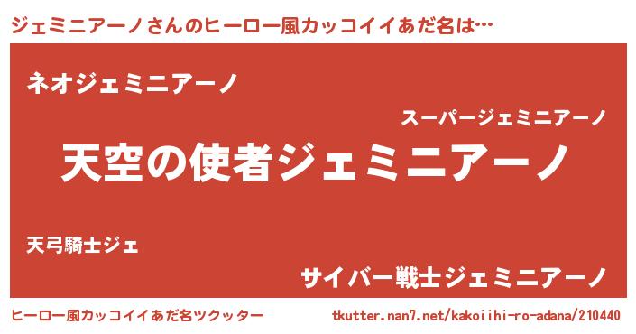 | 男性向けラノベタイトル風あだ名 | 『ジェミニアーノに滅ぼされるだけの簡単なお仕事です』 |