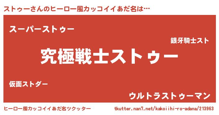 | 意味不明あだ名 | 『自称ストゥー』『ペロリンストゥー』 |