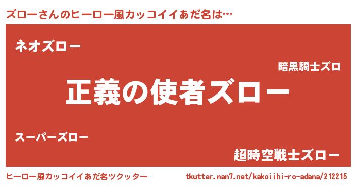 | ヘコむあだ名 | 『ズロー(震え声)』『ズロお』『牛乳』 |