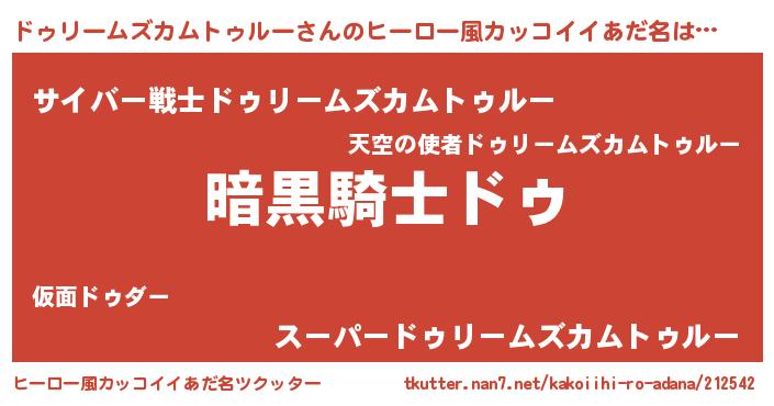 | 男性向けラノベタイトル風あだ名 | 『ドゥリームズカムトゥルースレイヤー』 |