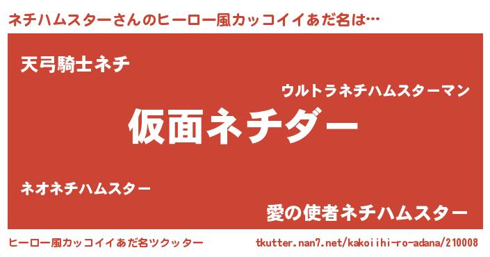| 意味不明あだ名 | 『住所不定無職ネチハムスター(71歳)』 |