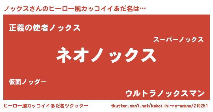 | 胡散臭い通販商品みたいなあだ名 | 『絶対に幸福をもたらす健康食品…その名も「ノックス」』 |