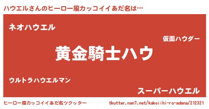 | ポケモン風あだ名 | 『ヒハウエル』『ハウゴンZ』 |